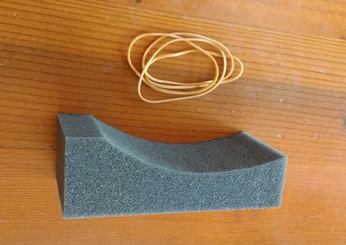 This foam is shaped to be used as a violin shoulder-rest. It is what I recommend for very small violins (sizes 1/32, 1/16 and 1/10) but can also be used with larger violins.  It can be attached on with the provided rubber bands as shown.